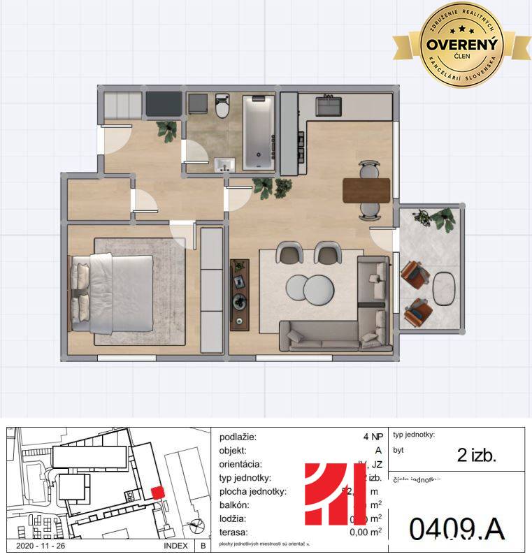 One bedroom apartment 52.27 m² Jégého, Bratislava - Ružinov